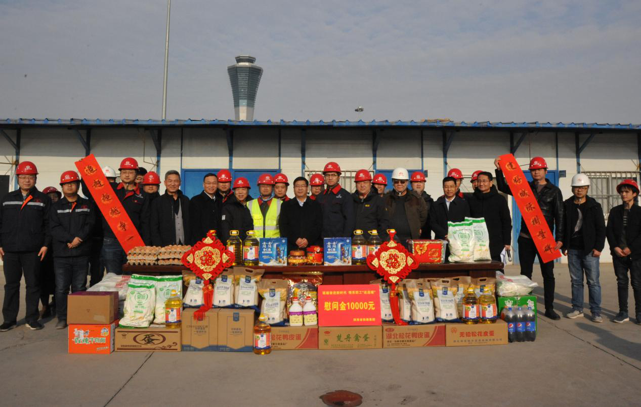 1月28日下午,集团党委副书记、总经理赵军锋,党委副书记李鹏宇,工会主席刘怀亮一行来到机场城际铁路机场西站施工现场,看望慰问正在紧张施工作业的广大一线参建人员,向他们及家人致以新春的问候,为他们在过去的一年里克服困难,抢抓机遇,确保年度建设任务的圆满完成表示衷心的感谢,并希望他们能够在新的一年里,坚定信心,真抓实干,齐心协力,再鼓干劲,为尽早实现机场线城际铁路顺利通车再立新功。