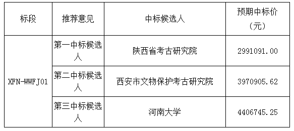 新建城际铁路西安至法门寺线文物发掘在国内进行第二次公开招标。项目法人陕西西法(南线)城际铁路有限公司组织完成了评标工作。现将中标候选人单位公示如下: