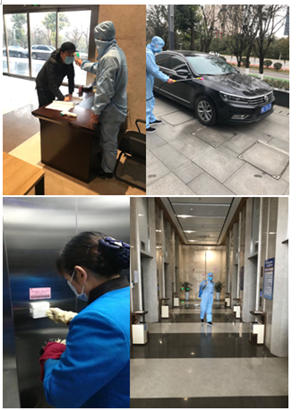 一是严把进口关。加强了对进入办公区的人员、车辆检查,关闭了部分进楼入口和通道,仅保留了1个出入口,严格执行进入办公区要接受体温检测的规定;二是严把消毒关。通过酒精擦拭、喷洒消毒液等方式对办公区公共区域特别是会议室、电梯间等重点领域进行全覆盖、无死角、高频次的消毒杀菌,多措并举加强办公区人员聚集区域的消杀工作;三是严把聚集关。调整餐厅集中就餐模式,防止干部职工因短时集聚、出现交叉感染。