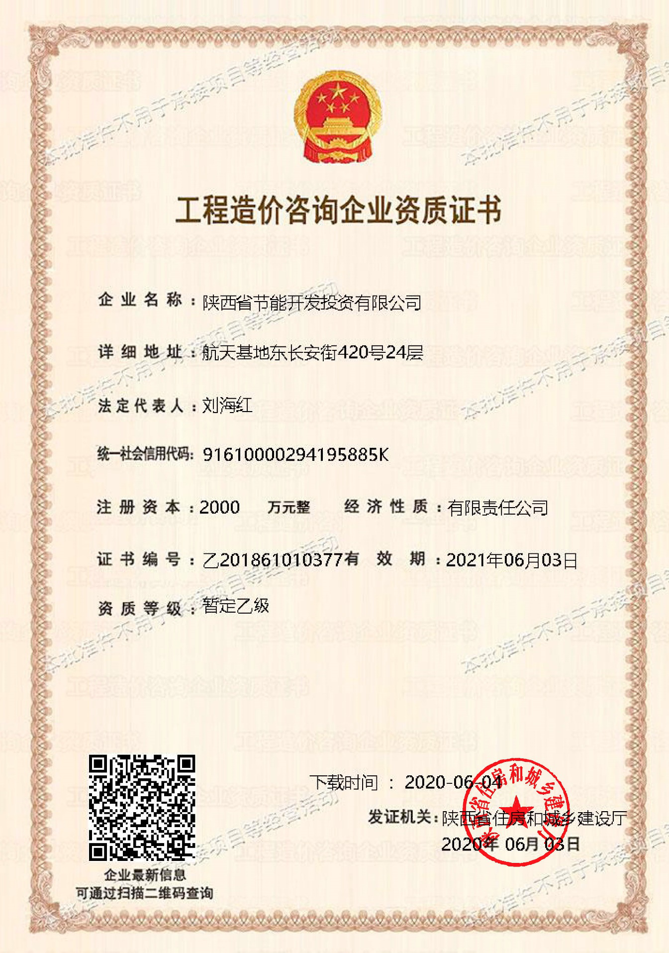 2月19日住建部下发了《关于修改<工程造价咨询企业管理办法><注册造价工程师管理办法>的决定》,取消了企业资质条件中造价工程师持股的要求。陕铁投节能公司紧扣这一利好政策,在上级单位的正确领导下,积极对接省住建厅,对节能公司工程造价资质进行了核定申请,最终取得由陕西省住房和城乡建设厅颁发的“工程造价咨询”企业资质证书。