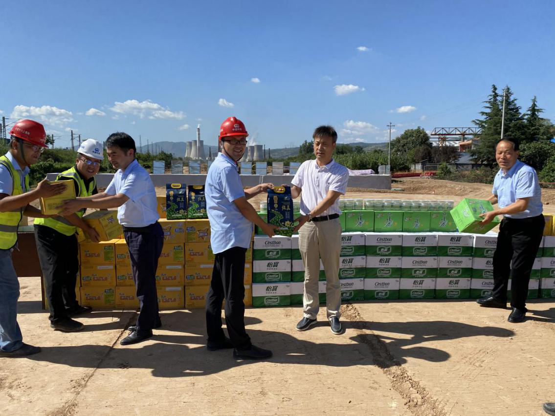夏末的骄阳,火伞高张。凤翔Ⅲ场的建设工地上,工友们挥汗如雨,依然热情高涨,现场施工如火如荼。为做好防暑降温和疫情防控工作,保障一线员工安全度夏,促进工程项目安全进行,8月20日,长青公司领导班子一行,带着铁路集团、陕铁投公司领导的嘱托,为奋斗在一线的工人送去防暑降温品和疫情防护用品,用行动为工友带去一丝清凉,送上一份关爱。