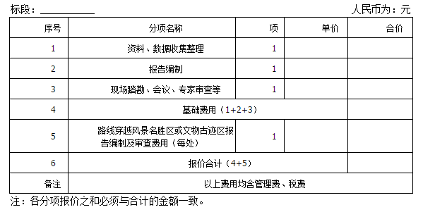 二、将招标文件“第六章 投标文件格式”报价文件格式的“三、投标报价清单表”修改为:
