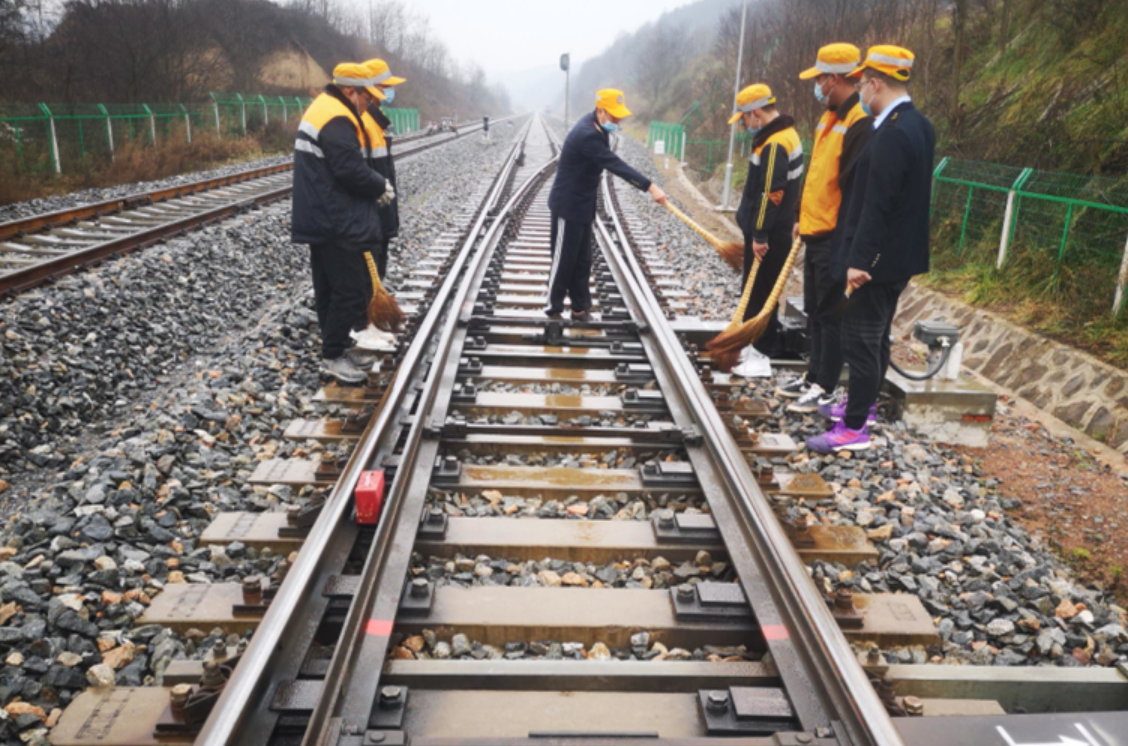11月23日,陕铁投工程公司组织综合维管段在招贤站开展道岔除雪演练。