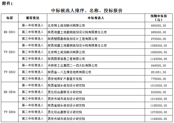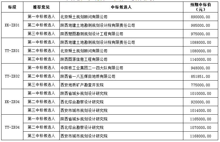 国家高速铁路网包海通道西安至安康、延安至榆林高速铁路土地预审、压覆矿产评估、规划选址在国内进行公开二次招标。项目法人陕西省铁路集团有限公司组织完成了评标工作。现将中标候选人单位公示如下: