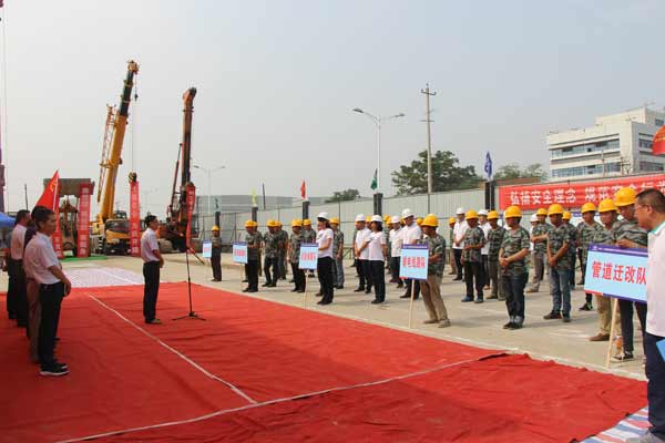 6月22日,机场线管线迁改施工单位积极响应陕西省铁路集团“追赶超越”劳动竞赛号召,举办以“六赛一和谐”为主题的“大干100天”劳动竞赛活动,城际铁路项目100多名施工人员参加了竞赛授旗仪式。