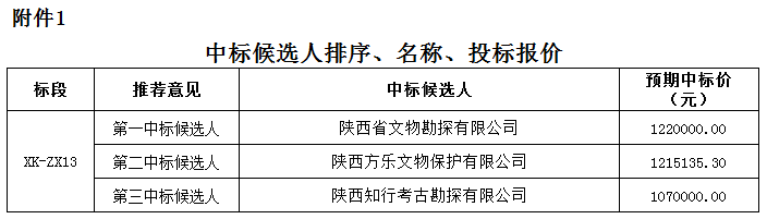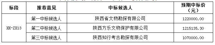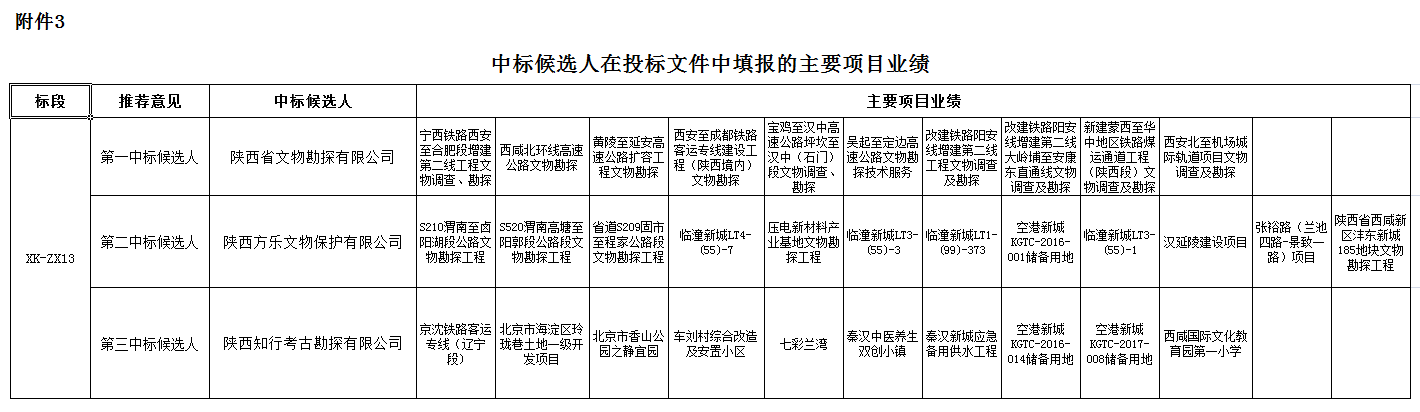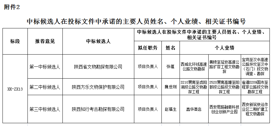 国家高速铁路网包海通道西安至安康高速铁路文物勘探在国内进行公开招标。项目法人陕西省铁路集团有限公司组织完成了评标工作。现将中标候选人单位公示如下: