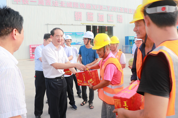8月8日,宝鸡市委常委、扶风县委书记周宇松带领相关人员来到西法北项目先期开工段施工现场,看望慰问一线建设人员。